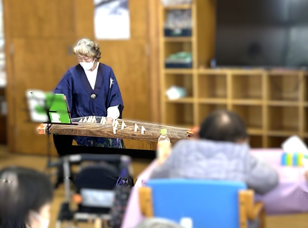 ・琴演奏:『うれしいひなまつり』・『さくらさくら』琴の生演奏を披露しました。曲目は、これからの季節にぴったりの『うれしいひなまつり』・『さくらさくら』。和楽器ならではの優雅な響きに、皆さまじっと耳を傾けていらっしゃったのが印象的でした。