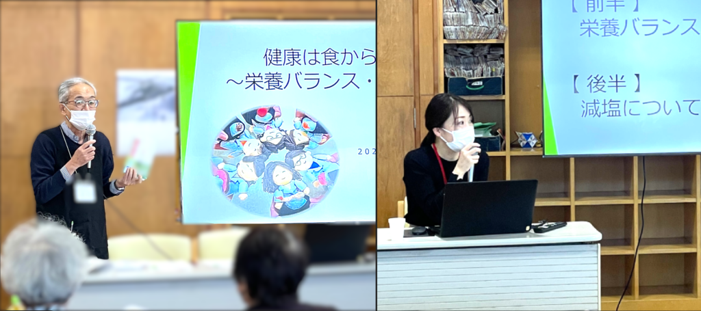 前半は、当院の院長と管理栄養士によるミニ講座を行いました。 「楽しく美味しく食べて健康に!」をテーマに、普段の食生活に関するアドバイスをしました。